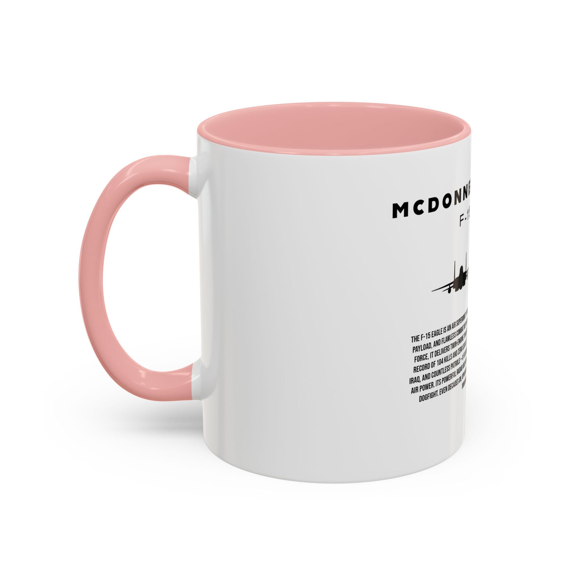 A beautiful, unique, and colorful mug featuring silhouettes of an F-15 Eagle and a brief description of the Eagle, one of the most important fighters in American history.